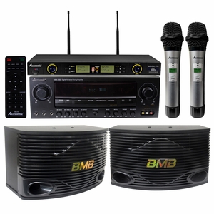 Acesonic AM-200 960 W Amplifier & BMB CSN-500 10" Speakers with Wireless Mics