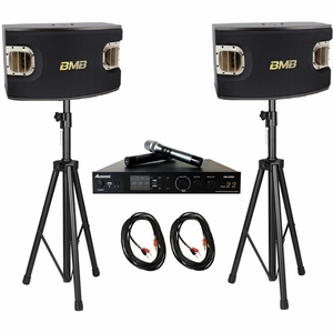 BMB CSV-900 Speakers with AM-2350 Amplifier 1400W Karaoke Sound System, Speaker Cable & Speaker Stand Package